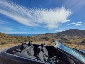 Genug Rad gefahren, Cabrio war angesagt. Hier die Hammerstrecke Route de Madeloc oberhalb Collioure.